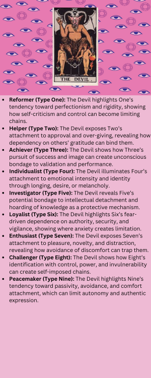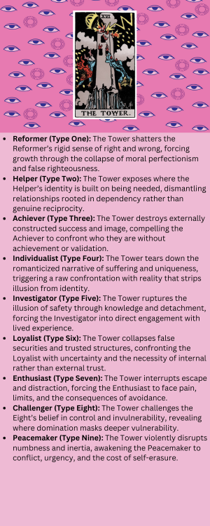The Major Arcana in Tarot represents the journey through life’s pivotal experiences, capturing profound spiritual and psychological themes. Each of the 22 cards is a powerful archetype, symbolizing universal human stages, emotions, and challenges—from the boundless potential of The Fool to the transformative insight of The World. In this section, we dive into each card’s unique energy and explore how it connects with the Enneagram types, offering insights on how these archetypal lessons resonate with the core motivations, fears, and strengths of each Enneagram point. Below, you’ll find an interactive collection of inforgraphics which summarize the essence of each card with “Learn More” buttons—each linking to pages with nine blogs for how each Ennegram point relates to each tarot card. Happy analysis!